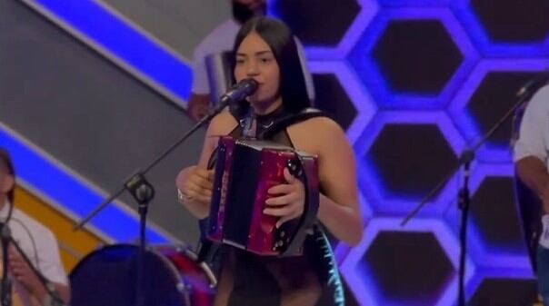 A la cantante se le ve lucir un enterizo negro con trasparencias mientras toca su acordeón y la demás agrupación la acompaña al ritmo de “ay, papi, papi, si tú me amas, hazme como el perro que bebe agua, bururururú bururururú bururururú”.