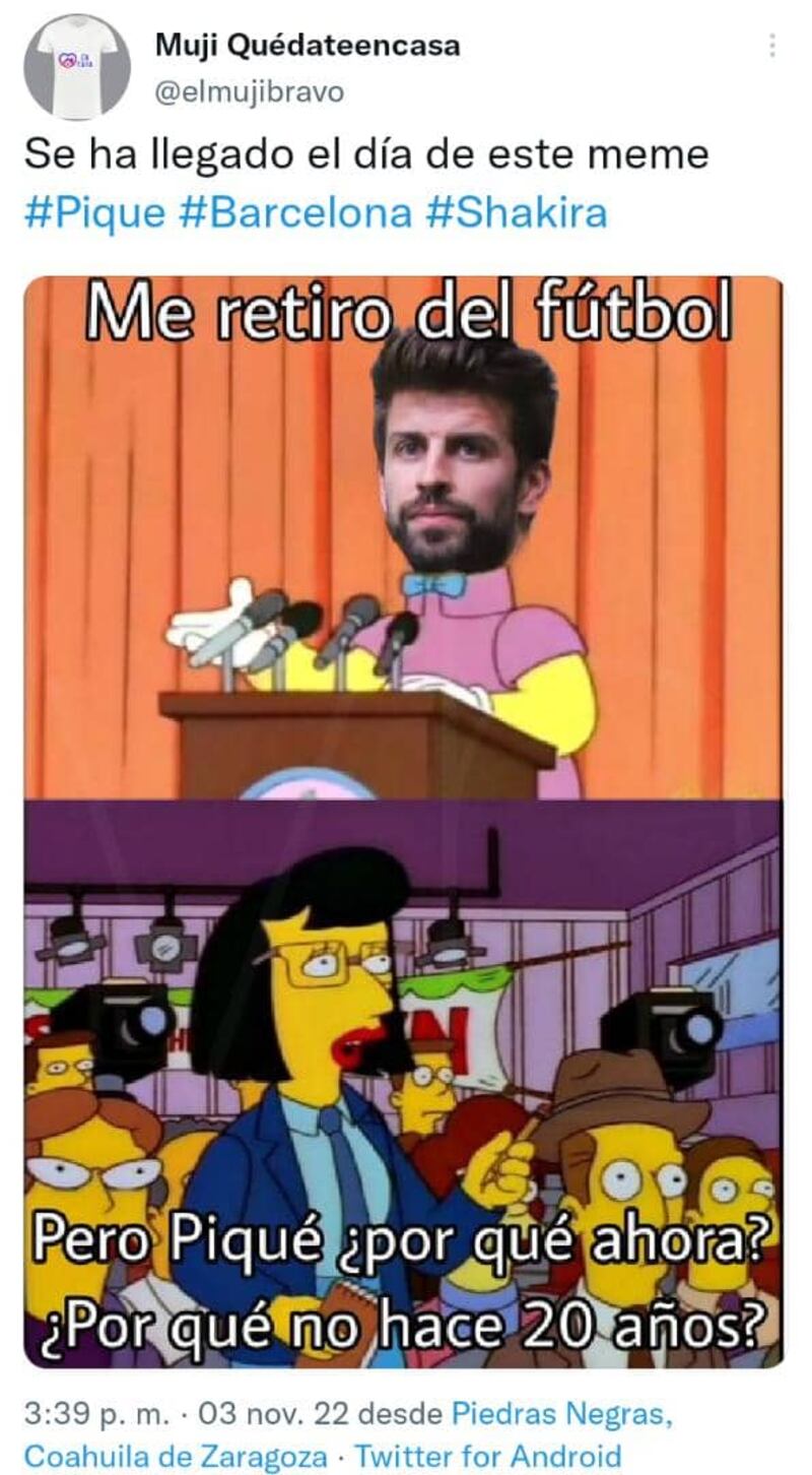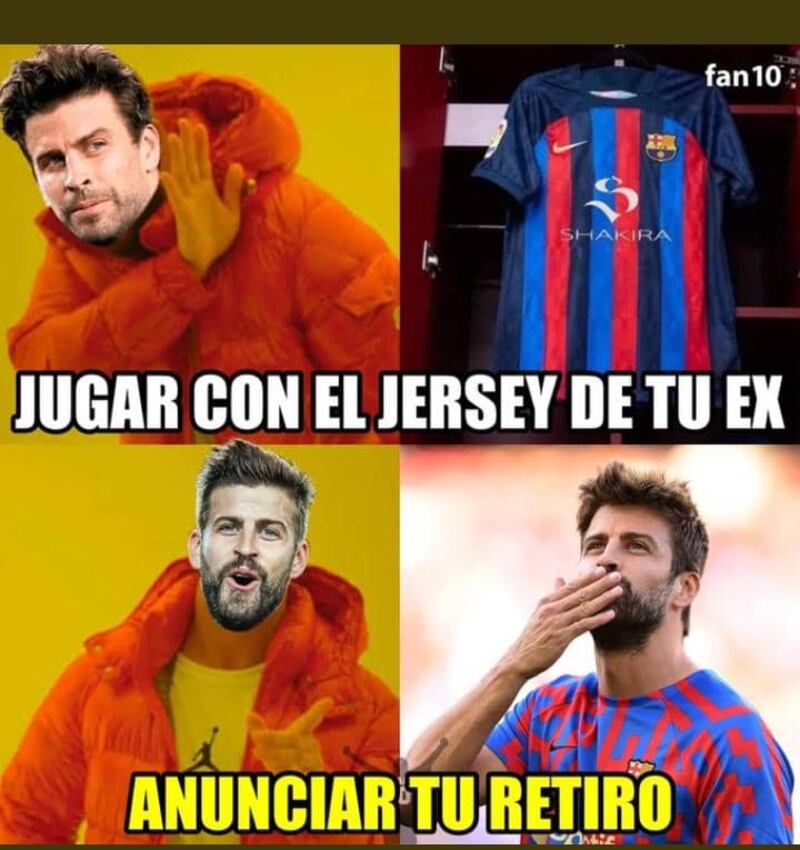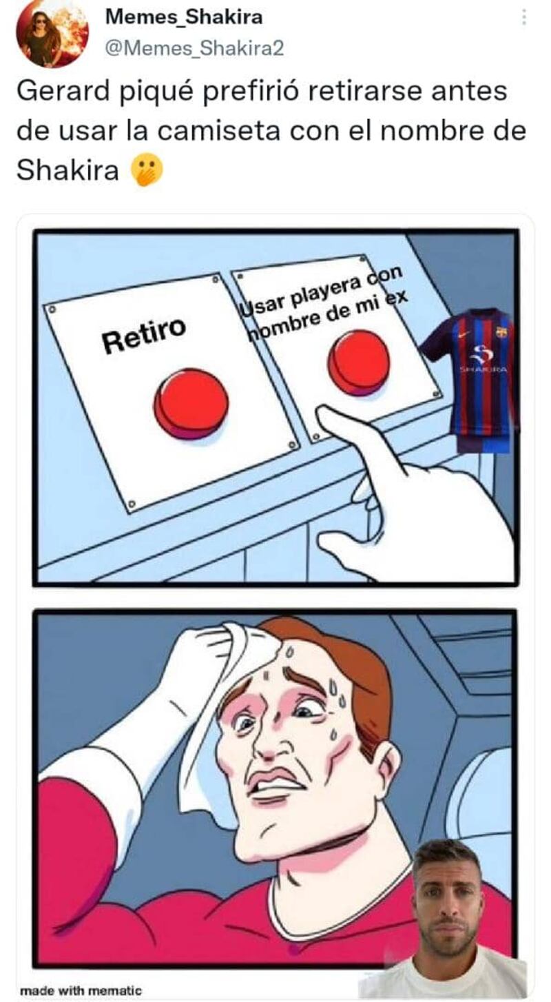Muchos vinculan la decisión de Piqué, convertido hace rato en un exitoso empresario, a la negativa de colocarse una camiseta con el nombre de Shakira como parte de un acuerdo del Barcelona con Spotify, no obstante, esto no son más que especulaciones y material para memes.