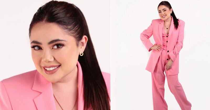 Para la serie fotográfica, Mariana Botas utilizó un total look rosa que se compuso de prendas que forman parte del catálogo de ‘Liverpool’ como un conjunto de blazer, pantalones sastre y chaleco que combinó con unas sandalias de plataforma en tono metalizado, siendo esta la cereza del pastel de su outfit. Su beauty look se compuso por un maquillaje ligero en tonos rosados con labios casi nude, algunos brillos en su mirada y una cola de caballo muy natural.
