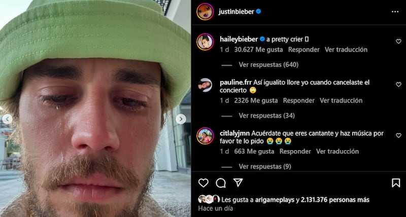 Justin no añadió contexto a ninguna de sus publicaciones ni ofreció explicación alguna sobre sus lágrimas, lo que despertó mensajes de todos los tipos: “No me gusta verte llorar me rompes el alma”; “Es una señal de que necesita ayuda”; “¿Estás bien?”; “Espero que estés bien, odio ver lágrimas corriendo por tu cara”; “Me destruye esa imagen”; fueron parte de los comentarios.