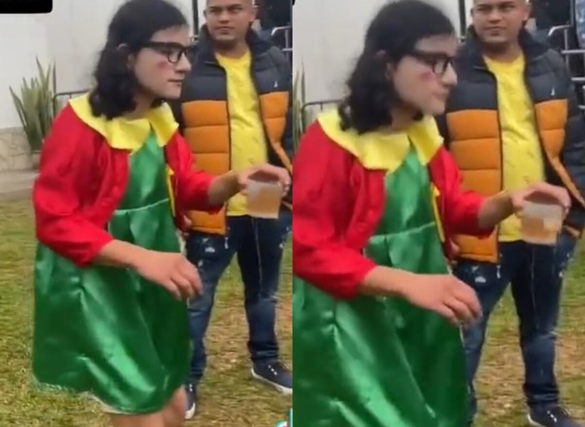 Se trata de una persona vestida como la Chilindrina, moviéndose al ritmo de la canción, pero con el rostro totalmente inexpresivo.