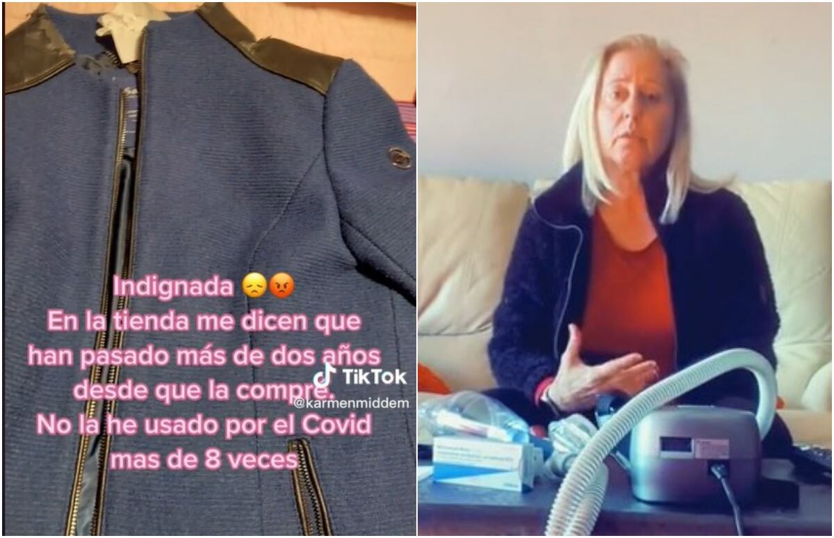“He ido a la tienda porque, como veis, aquí se me ha pelado todo. Esta cazadora me la compré justo antes de entrar en covid y ahora resulta que me dicen que no me pueden hacer el cambio porque ha pasado más de dos años”, indicó la mujer.