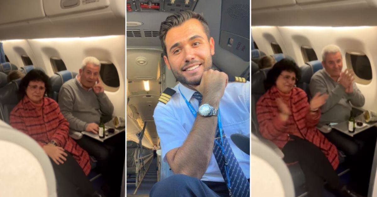 “Quería aprovechar el día de hoy para compartir una pequeña historia personal con ustedes. El vuelo de hoy es muy especial para dos personas que van en este vuelo entre todos ustedes, pero aún lo es más para mí”, dijo por medio del altavoz explicando que se trataba de sus padres.