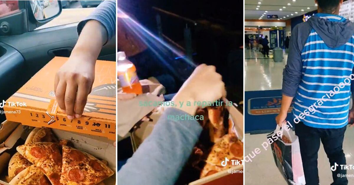 Resulta que dentro de la caja había una pizza recién horneada para compartir y llegó al cine con una bolsa incluida para esconderla.