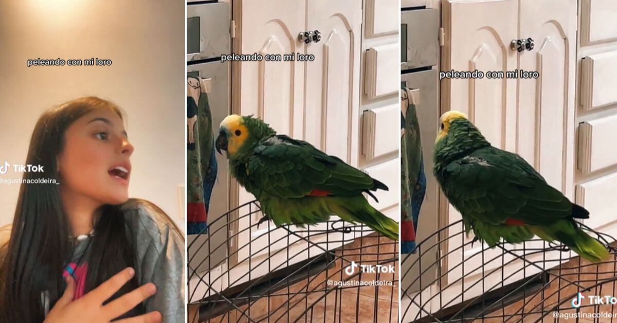 La adolescente @agustinacoldeira_ subió el video a TikTok, donde hay una “discusión” entre ella y su loro cuando intenta grabar un mensaje de voz.