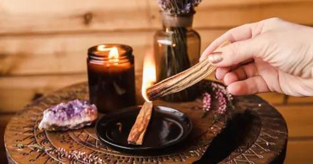 - Enciende un extremo del trozo de palo santo.