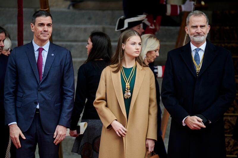El 22 de mayo, el rey Felipe y la reina Letizia Ortiz celebraron su aniversario con varias fotos familiares, y en las mismas se puede ver a Leonor de Borbón con unos pantalones rectos, una camiseta del mismo color y un blazer azul bebé.