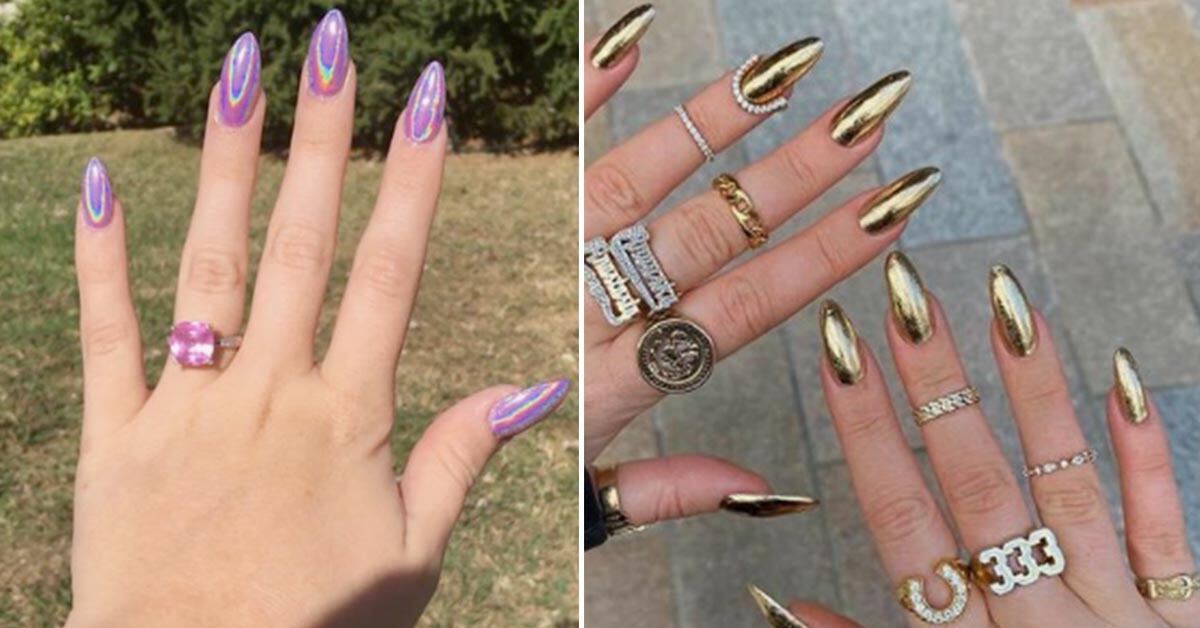 Se trata de las uñas almendradas espejo que son muy elegantes y lo mejor, es que rejuvenecen las manos, haciéndote lucir juvenil y moderna.